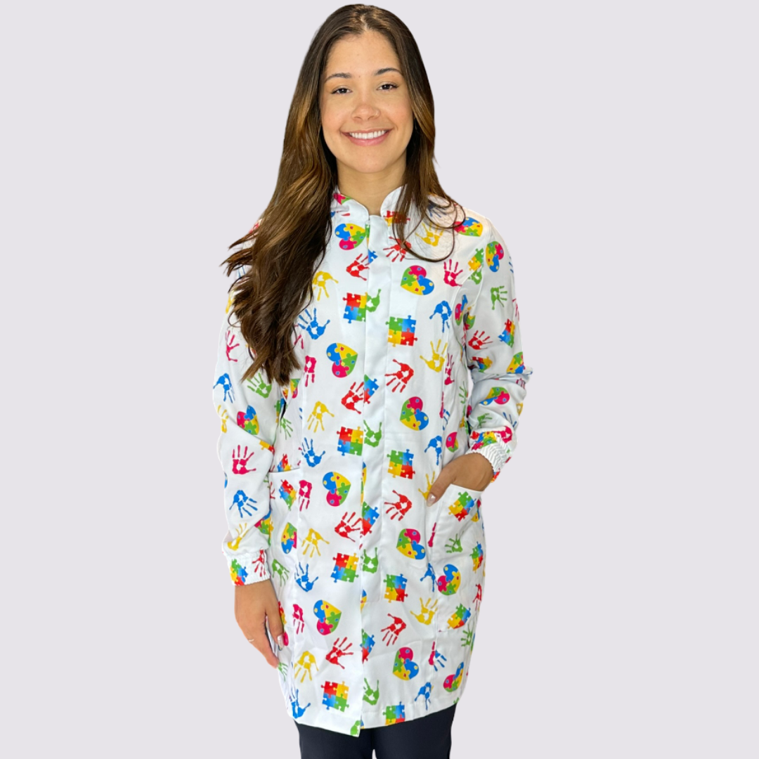 Jaleco Feminino Estampado Autismo em Gabardine Leve